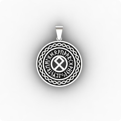 Массивный увесистый серебряный медальон с полным руническим кругом. Все 24 руны "Одина" помещены в алфавитном ряде порождения.